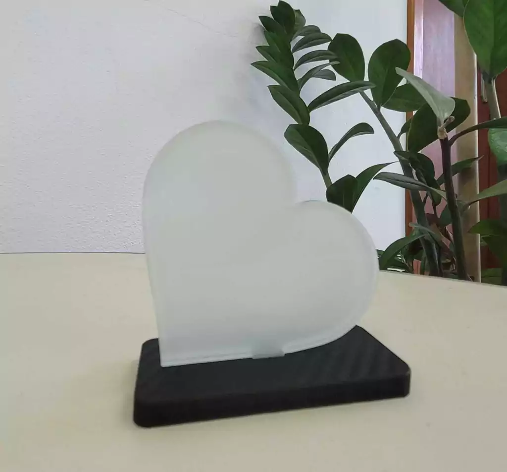 Acrílico cristal sublimático formato coração 8 X 7 cm com base em MDF